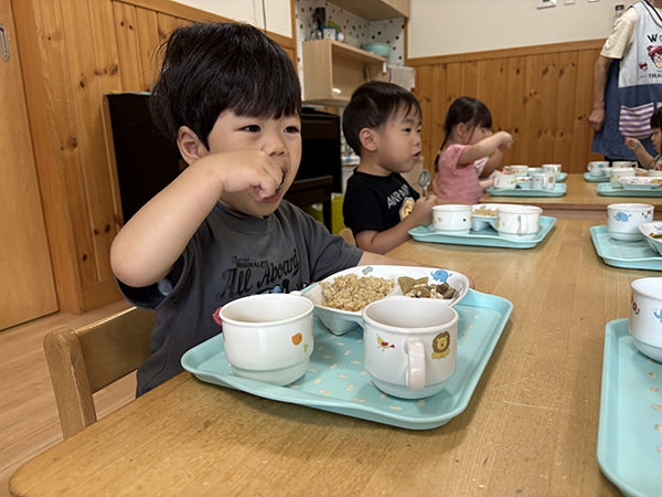 たんぱく質に関しましては、豆腐・大豆・納豆などの大豆製品から植物性たんぱく質を中心に取り入れているため、身体に優しい給食となっています。乳幼児期は舌の味覚が発達する時期です。